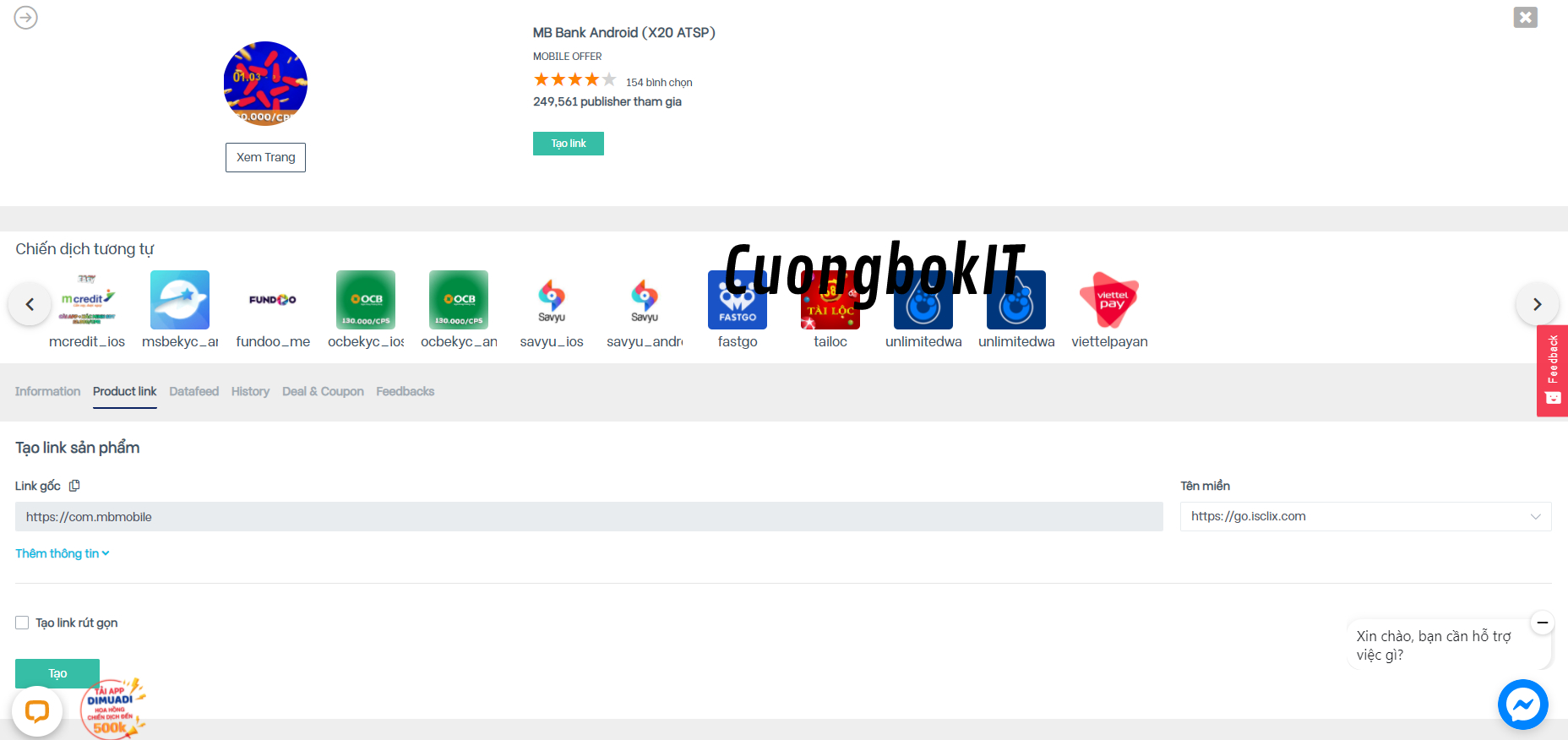Đối với những chiến dịch không có nhiều link sản phẩm, ví dụ các Chiến Dịch Tải App như MBBank thì phần điền link sẽ được ghi sẵn, mình không phải ghi nữa!